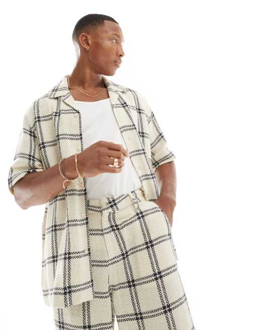 ASOS Design – Kariertes Relaxed Fit Hemd mit Reverskragen und Korbmuster, Kombiteil