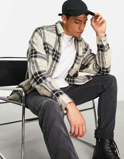 ASOS DESIGN – Kariertes Super-Oversize-Hemd aus angerautem Flanell im Blockfarbendesign