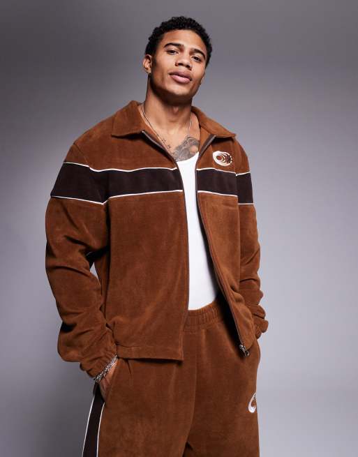 ASOS DESIGN – Kastig geschnittene Oversize-Trainingsjacke aus braunem Fleece mit Einsätzen, Kombiteil