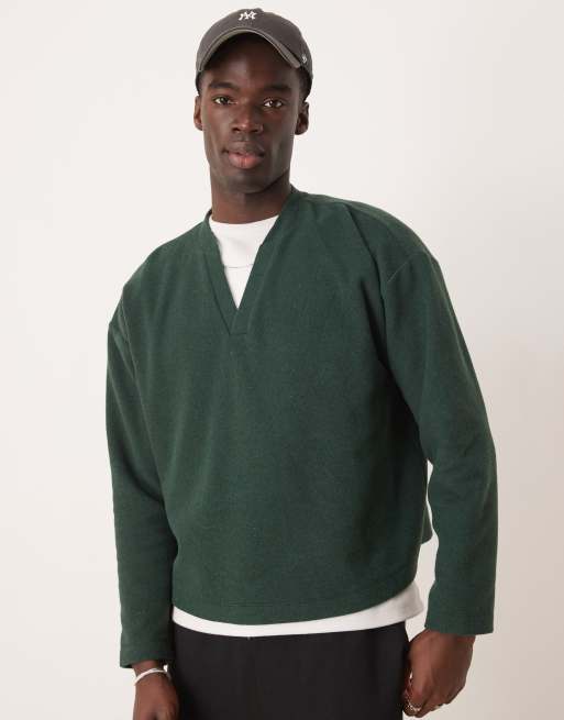 ASOS DESIGN – Kastig geschnittener Oversize-Pullover aus schwerem, angerautem Rippmaterial in Grün
