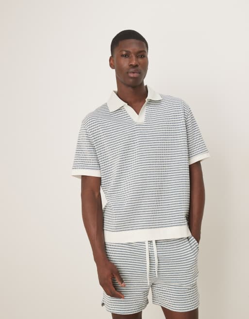 ASOS DESIGN – Kastig und locker geschnittenes Polohemd mit strukturiertem Streifenmuster in Neutral