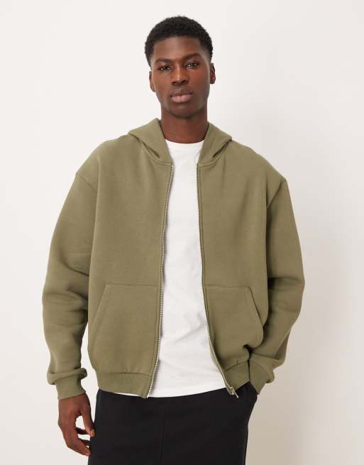 ASOS DESIGN – Kastige Basic-Kapuzenjacke in staubigem Olivgrün mit Relaxed-Fit-Schnitt