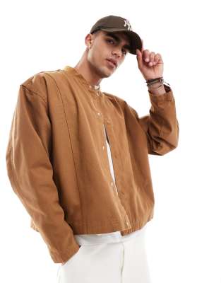 ASOS DESIGN – Kastige Oversize-Trainerjacke aus Jersey in verwaschenem Hellbraun