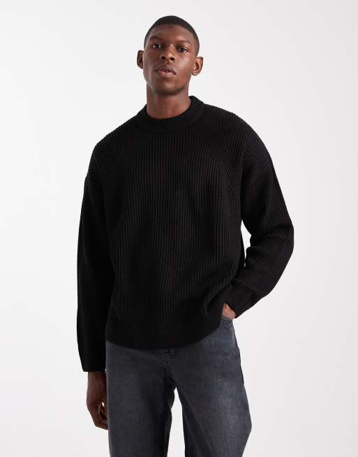 ASOS DESIGN – Kastiger, gerippter Oversize-Pullover aus Strick mit Patentmuster in Schwarz