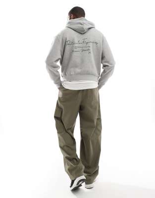 ASOS DESIGN – Kastiger Kapuzenpullover in Grau meliert mit Print