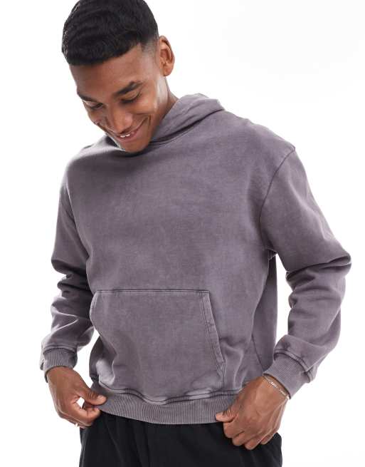 ASOS DESIGN – Kastiger Kapuzenpullover in verwaschenem Anthrazit mit Oversize-Schnitt