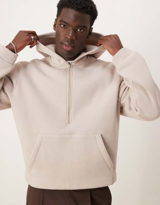 ASOS DESIGN – Kastiger Oversize-Kapuzenpullover in Beige mit halbem Reißverschluss