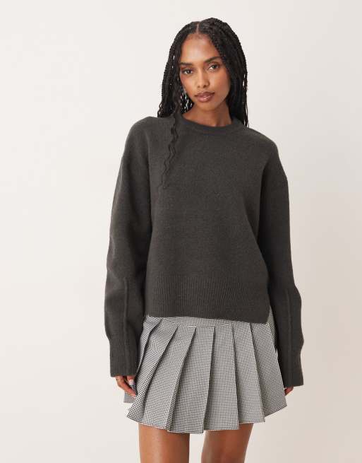 ASOS DESIGN – Kastiger Pullover in Anthrazit mit Rundhalsausschnitt und Seitenschlitz