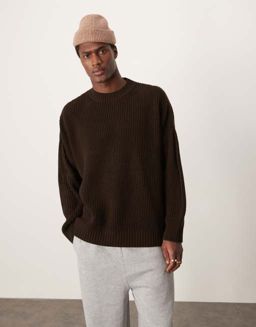 ASOS DESIGN – Kastiger Super-Oversize-Strickpullover in geripptem Dunkelbraun