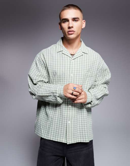 ASOS DESIGN – Kastiges Dad-Hemd in Salbeigrün kariert mit Oversize-Schnitt