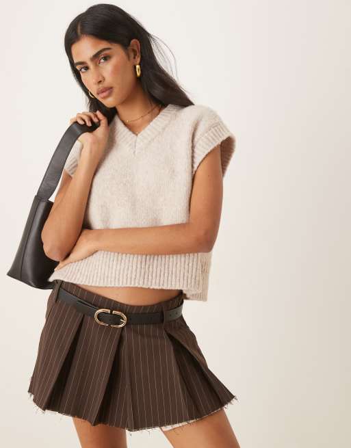 ASOS DESIGN – Kastiges, flauschiges Tanktop in Hellbeige mit V-Ausschnitt