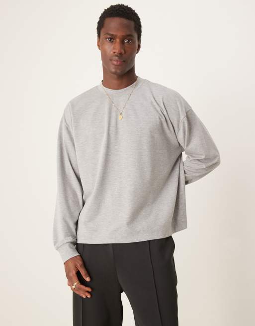 ASOS DESIGN – Kastiges, langärmliges Oversize-Shirt in Grau mit Rippenmuster