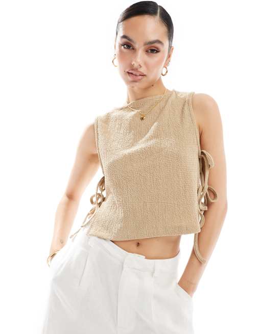 ASOS DESIGN – Kastiges Oberteil in strukturiertem Braun mit geschnürten Seiten