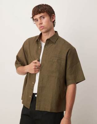 ASOS DESIGN – Kastiges Oversize-Hemd aus 100% Leinen in KHaki