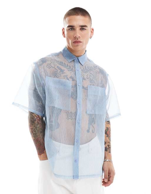 ASOS DESIGN – Kastiges Oversize-Hemd aus Organza in Blau gestreift