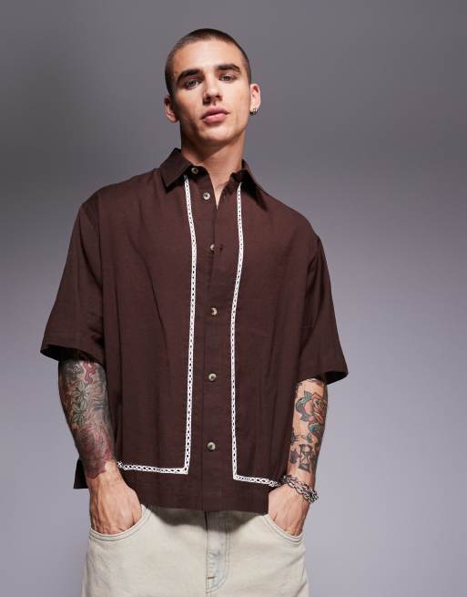 ASOS DESIGN – Kastiges Oversize-Hemd in Braun mit gehäkeltem Detail