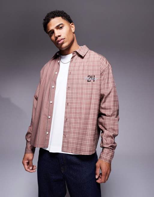 ASOS DESIGN – Kastiges Oversize-Hemd in Braun mit kontrastierendem Aufdruck und Stickereidetail