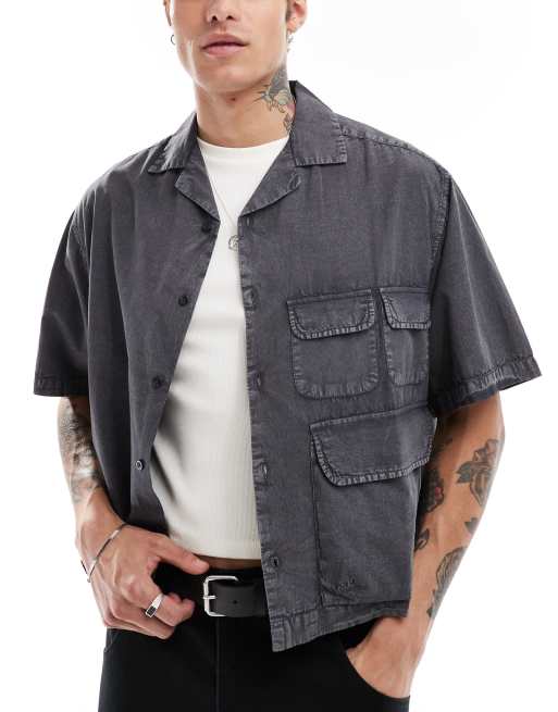 ASOS DESIGN – Kastiges Oversize-Hemd in Schwarz mit Utility-Taschen und Reverskragen