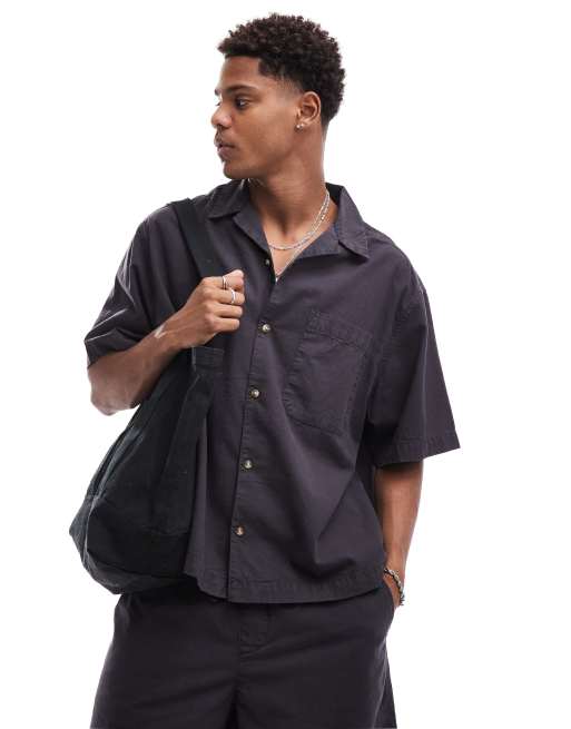 ASOS DESIGN – Kastiges Oversize-Hemd in schwarzer Leinenoptik mit Reverskragen