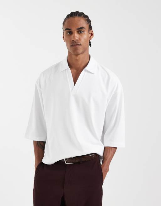 ASOS DESIGN – Kastiges Oversize-Polohemd aus schwerem Material in Weiß mit Halbärmeln.