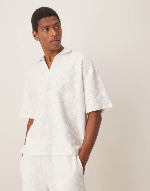 ASOS DESIGN – Kastiges Oversize-Poloshirt in Ecru mit Jacquard-Muster, Kombiteil