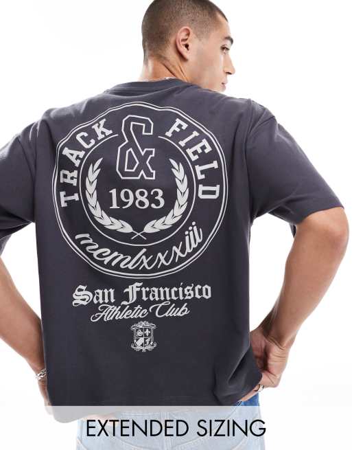 ASOS DESIGN – Kastiges Oversize-T-Shirt in Anthrazit mit Städteprint vorne