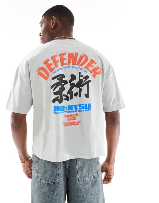 ASOS DESIGN – Kastiges Oversize-T-Shirt in Hellgrau mit Souvenir-Grafik