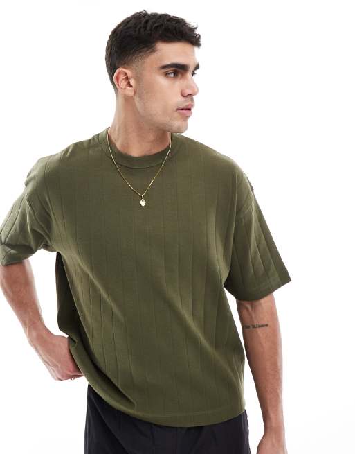 ASOS DESIGN – Kastiges Oversize-T-Shirt in Khaki mit Rippenstruktur
