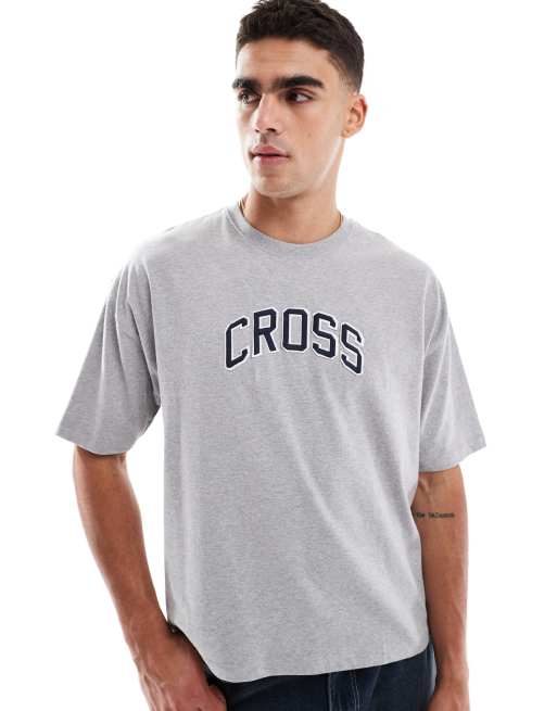 ASOS DESIGN – Kastiges Oversize-T-Shirt in meliertem Grau mit Applikation