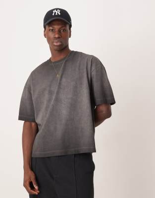 ASOS DESIGN – Kastiges Oversize-T-Shirt in verwaschenem Schwarz mit Pigmentfärbung