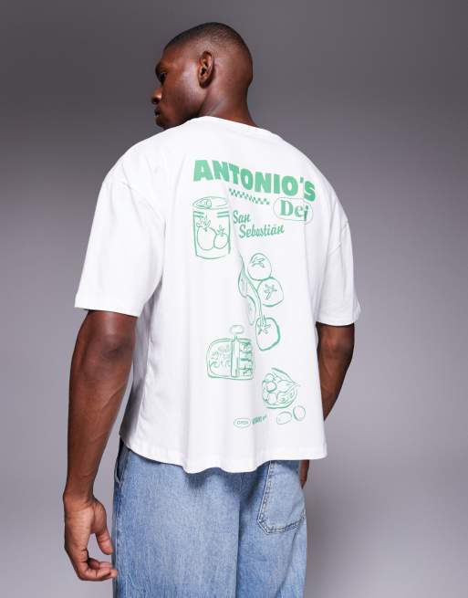 ASOS DESIGN – Kastiges Oversize-T-Shirt in Weiß mit Food-Print