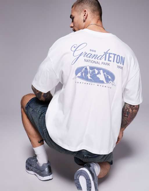 ASOS DESIGN – Kastiges Oversize-T-Shirt in Weiß mit Landschafts-Print