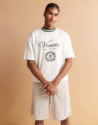 ASOS DESIGN – Kastiges Oversize-T-Shirt in Wollweiß mit City-Grafikprint
