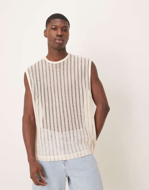 ASOS DESIGN – Kastiges Oversize-Tanktop aus Häkelstoff in Beige