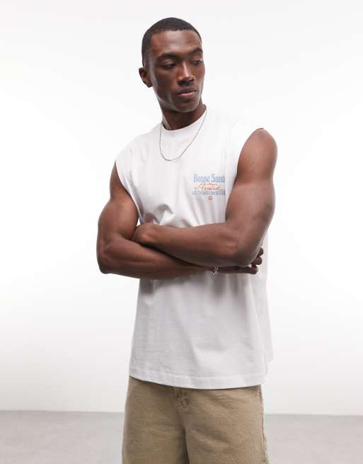 ASOS DESIGN – Kastiges Oversize-Tanktop in Weiß mit Text-Grafikprint