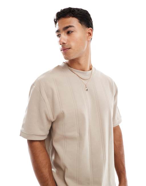 ASOS DESIGN – Kastiges Relaxed-Fit-T-Shirt in Steinbeige mit Rippenstruktur