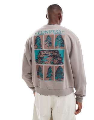 ASOS DESIGN – Kastiges Sweatshirt in Grau mit Rückenprint