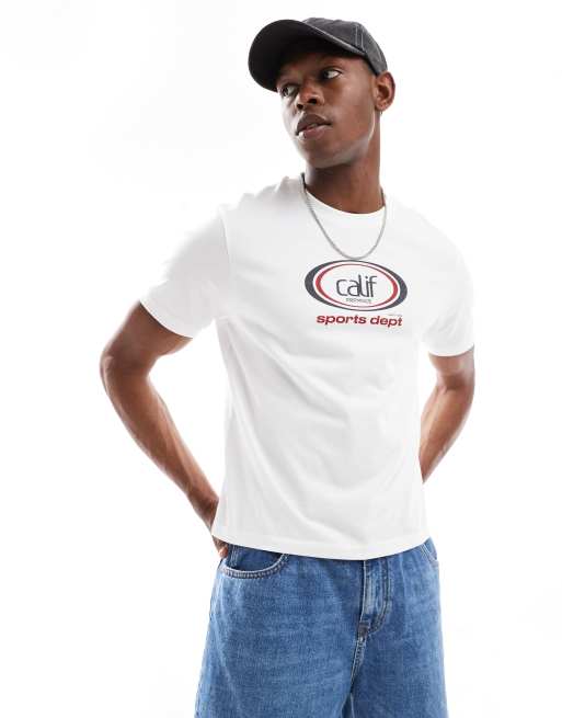 ASOS DESIGN – Kastiges T-Shirt in Wollweiß mit Sports-Grafik in regulärer Passform