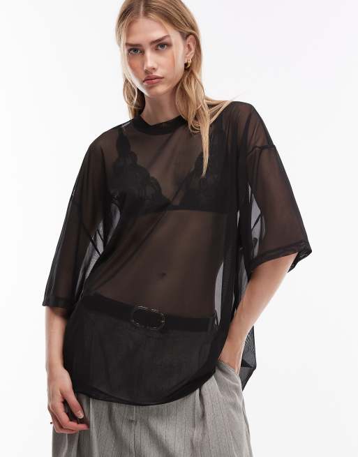 ASOS DESIGN – Kastiges transparentes Oversize-T-Shirt aus Netzstoff in Schwarz, Kombiteil