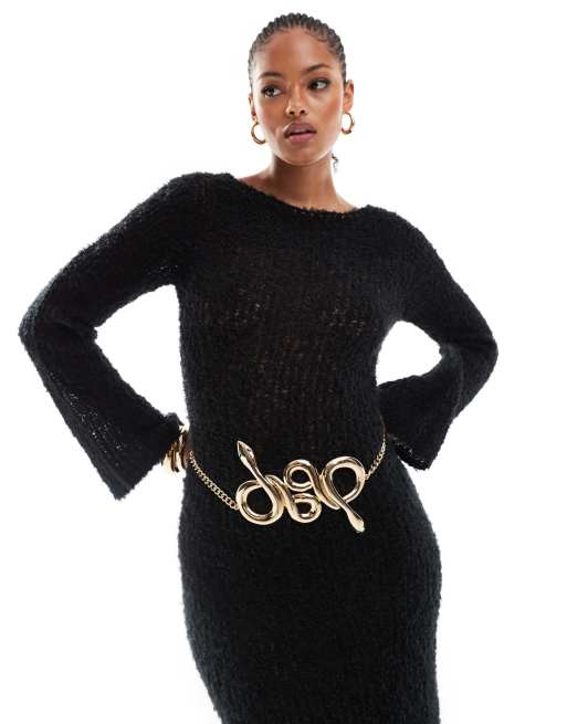 ASOS DESIGN – Kettengürtel in Gold mit verdrehtem Schlangendetail