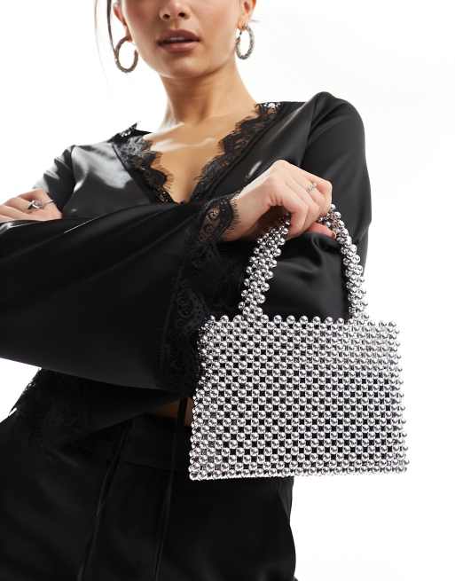 ASOS DESIGN – Kleine Clutch aus silbernen Perlenkugeln mit Tragegriffen