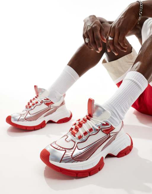 ASOS DESIGN – Klobige Sneaker in Weiß mit roten Einsätzen