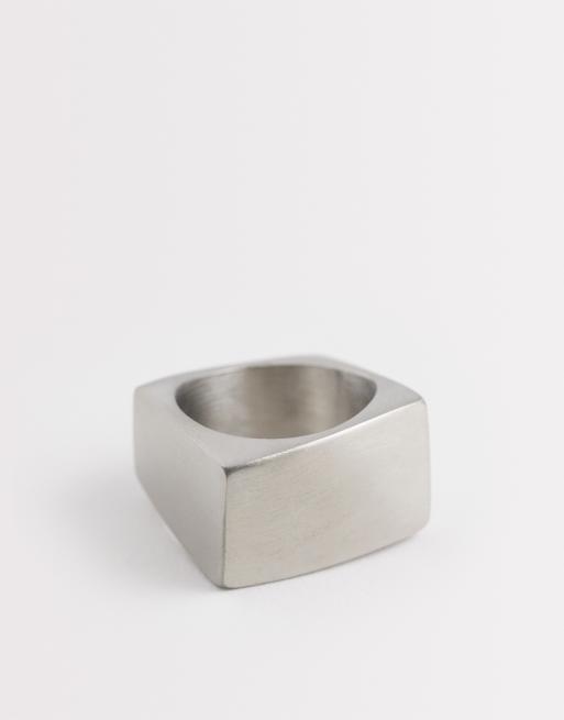 ASOS DESIGN – Klobiger, eckiger Ring aus wasserfestem Edelstahl in Silberoptik