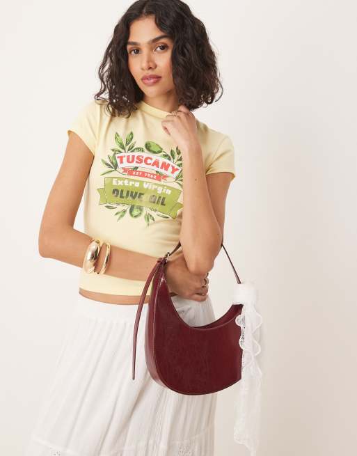 ASOS DESIGN – Knapp geschnittenes T-Shirt in Gelb mit „Tuscany Olive Oil“-Grafikprint