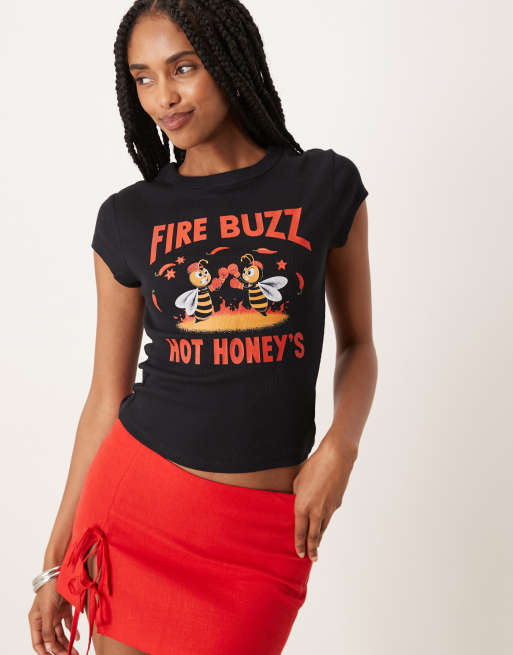 ASOS DESIGN – Knapp geschnittenes T-Shirt in Schwarz mit Bienen-Grafikprint