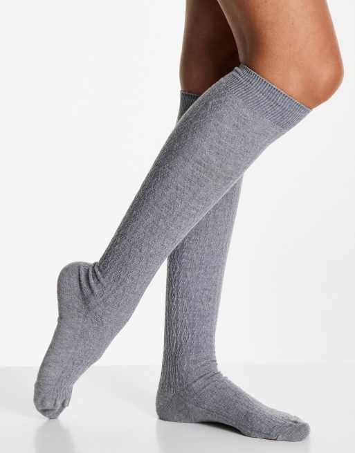 ASOS DESIGN – Kniehohe Socken mit Zopfstrickmuster in Grau