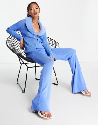 ASOS DESIGN – Kombi-Set mit Strickjacke mit Kunstpelzkragen und gestrickter Schlaghose