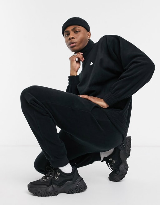 ASOS DESIGN – Kombiteil aus schwarzem Fleece mit Dreiecksdruck in Schwarz