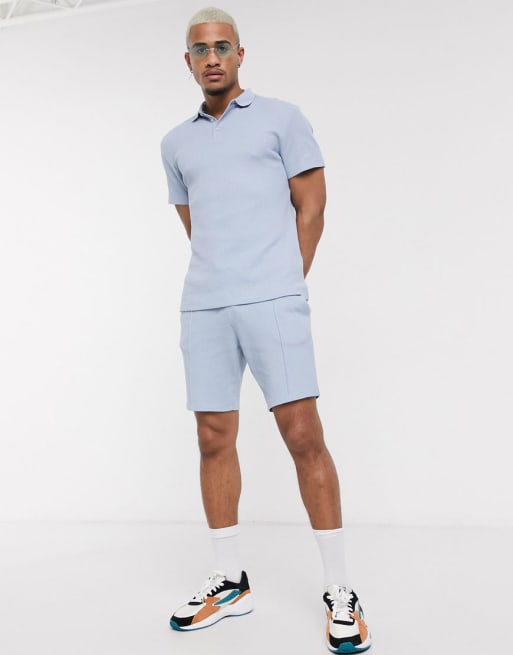 ASOS DESIGN – Kombiteil aus schwerem Stoff mit Waffelmuster in Blau