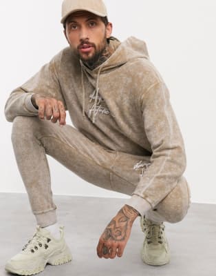 ASOS DESIGN – Kombiteil aus verwaschenem, wendbarem Fleece mit Dark Future-Logo